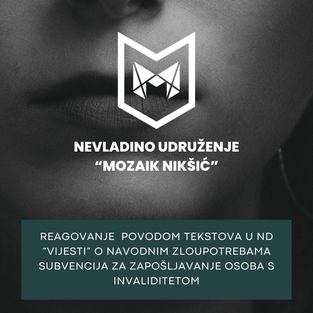 REAGOVANJE NVO MOZAIK NIKŠIĆ povodom tekstova u ND “Vijesti” o navodnim zloupotrebama subvencija za zapošljavanje osoba s invaliditetom