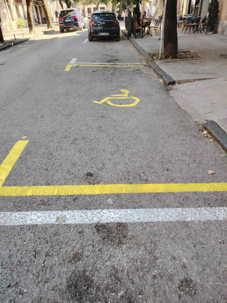Godinama ovo parking mjesto nije bilo propisno označeno, iako su u međuvremenu u gradu skoro sva druga parking mjesta obnovljena. Nažalost, upravo ona namijenjena osobama s invaliditetom ostala su zanemarena. Pored toga, komunalna policija ne reaguje adekvatno na nepravilno parkiranje, pa smo odlučili da sami riješimo problem.
